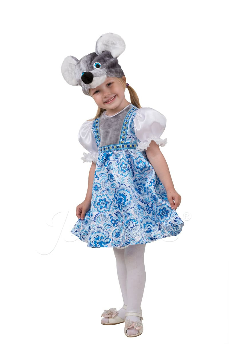 В комплект детского костюма Мышки Варварки Гжель в русском стиле входят:шапочка, платье с узорами гжель.