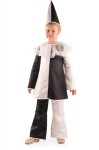 Костюм Пьеро для мальчика или Пьеретта для девочки - карнавальный костюм из сказки Приключения Буратино, а также - персонаж из классических сюжетов итальянских театральных историй.В комплект входят:- колпак,- камзол,- брюки.